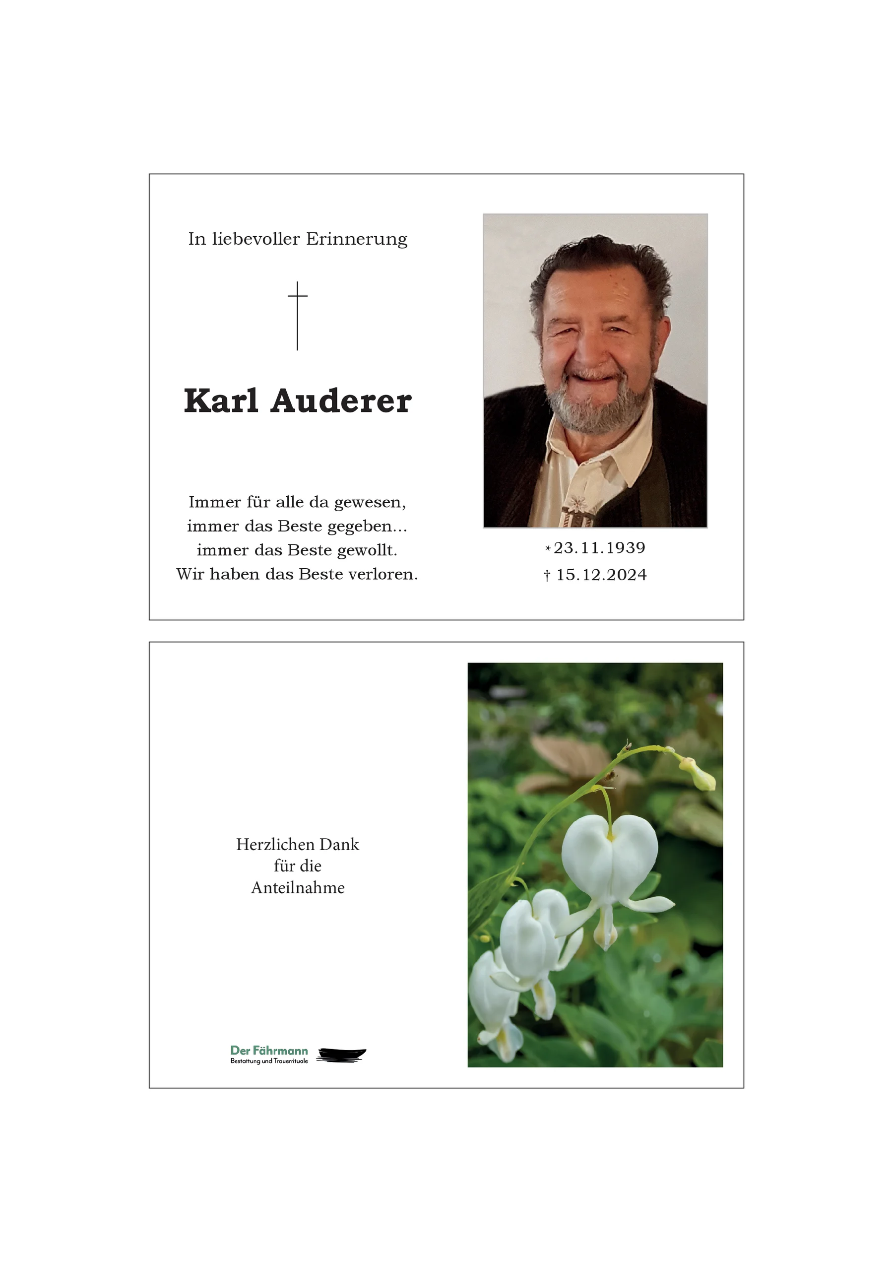 Ruhe in Frieden, lieber Karl ?️ deine Nachbarn Hubert& Monika