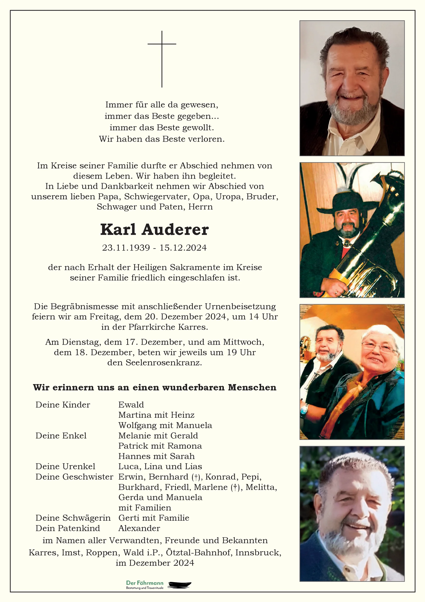 Gute Reise lieber Karl! Der Herrgott möge dir deine Herzlichkeit, Freude und Güte im Himmel zurückgeben. Du warst ein besonderer Mensch!
