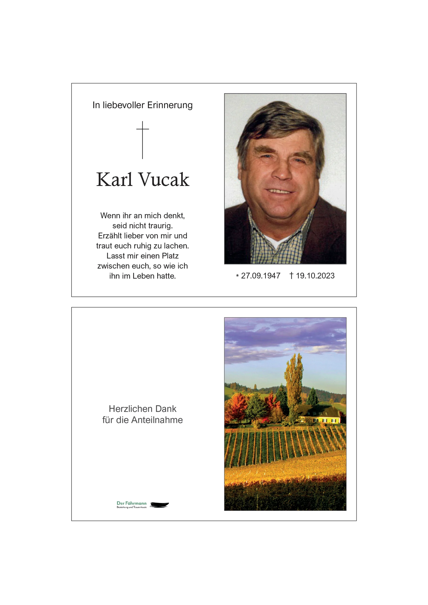 Kondolenzbuch für Karl Vucak