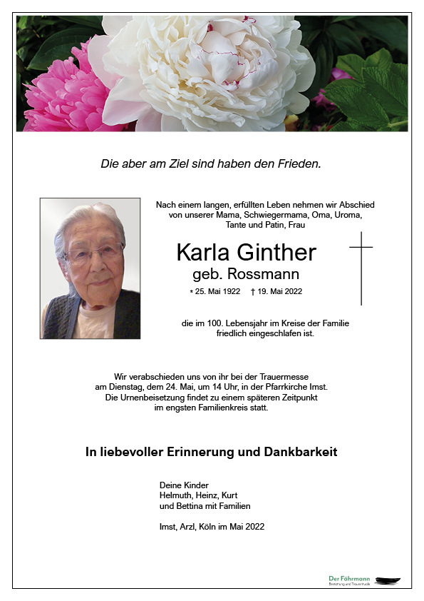 besonderen Zeit des Abschiednehmens. Viel Kraft und Trost wünschen Euch Franz und Johanna aus Oetz