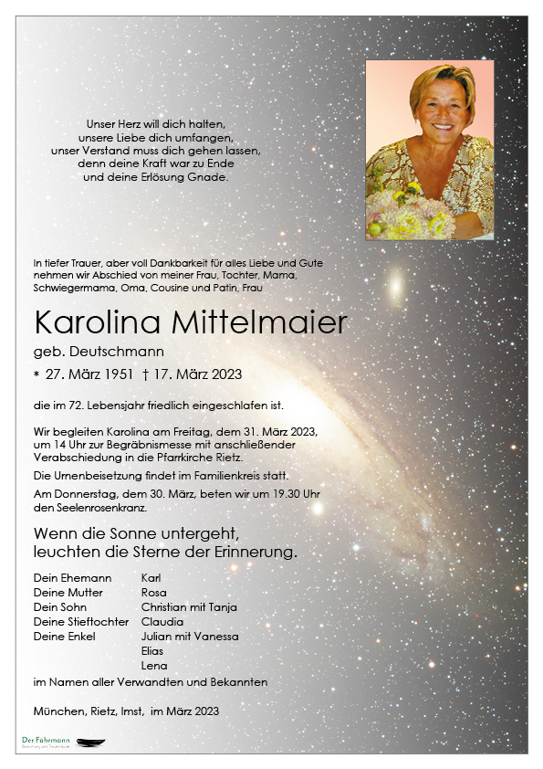Kondolenzbuch für Karolina Mittelmaier