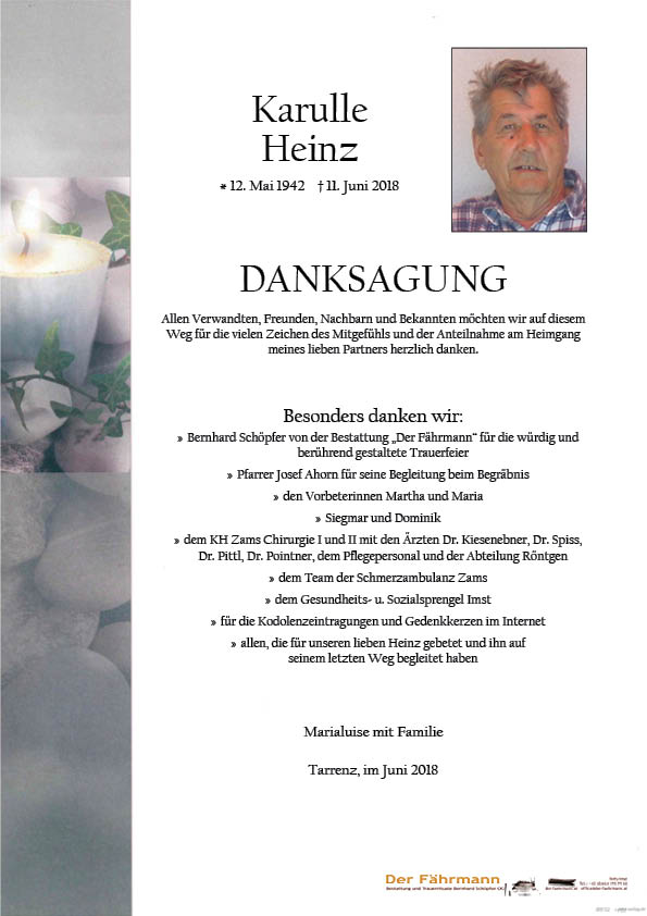 Kondolenzbuch für Karulle Heinz