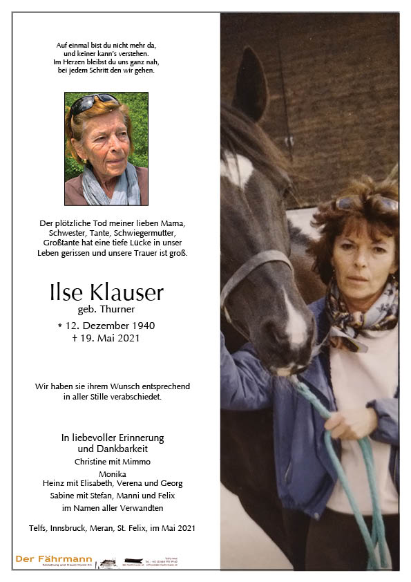 Gute Reise Ilse, mein Beileid Bettina Derflinger