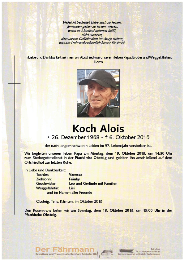 Kondolenzbuch für Koch Alois