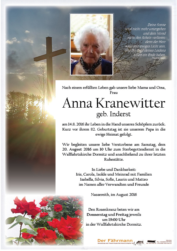Aufrichtige Anteilnahme entbietet Fam.J.u.M. Gritsch