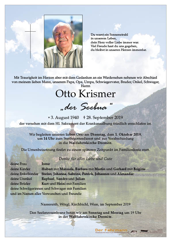 wir haben so tolle stunden mit den seebuabn und vor allem mit otto erlebt. Wir werden ihn nie vergessen. unser herzlichstes beileid. Familie Andre Innsbruck