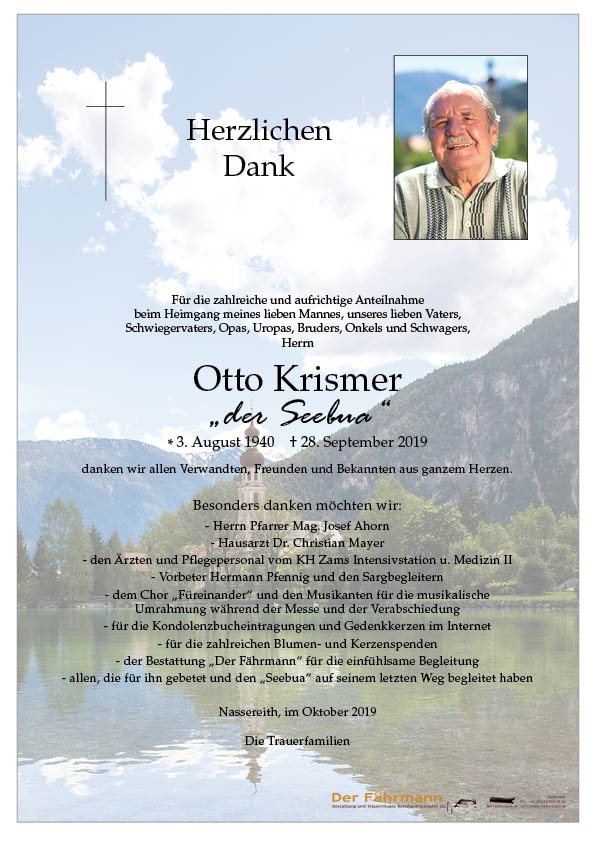 Daher sag ich dir Otto nicht auf Wiedersehen, sondern so wie wier es in Nassereith sagen und wie es du immer gesagt hast.