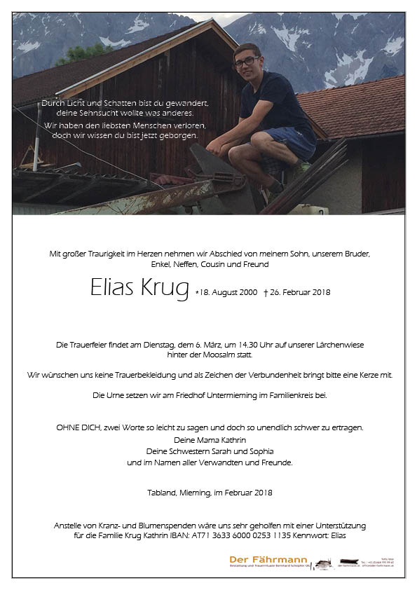 Ruhe in Frieden lieber Elias! Jungbauernschaft Mieming