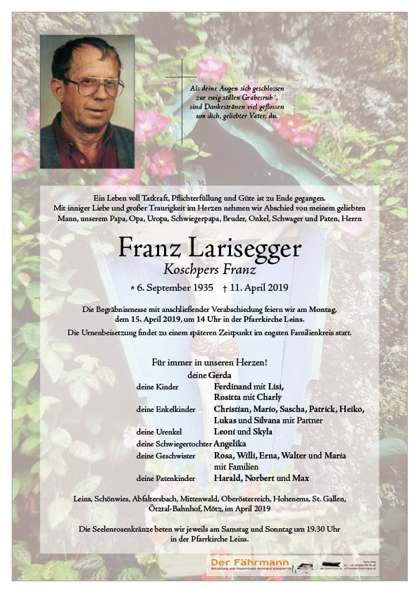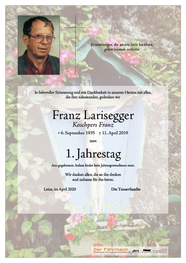 Kondolenzbuch für Larisegger Franz