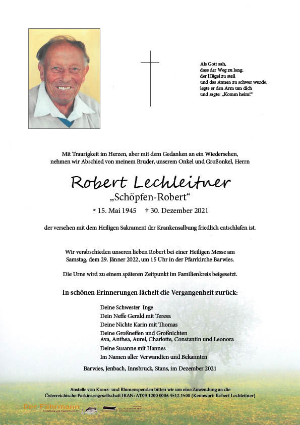 Kondolenzbuch für Lechleitner Robert