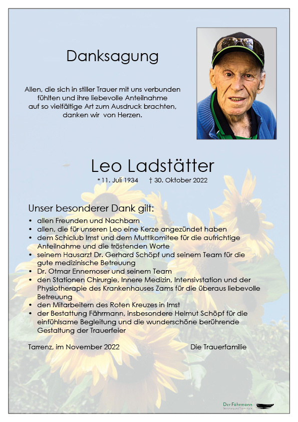 Aufrichtige Anteilnahme zum Heimgang von Leo.