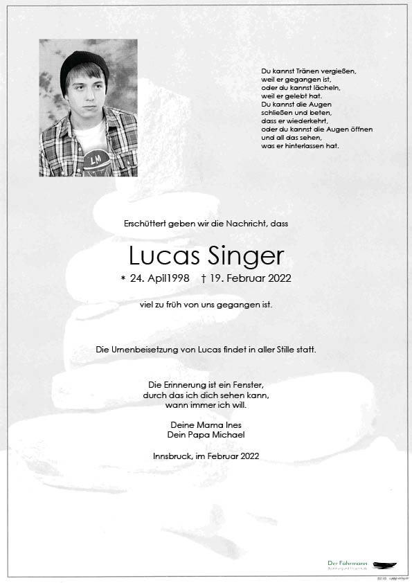 I wünsche dir das guat ohkemma bisch dort wo iatz bisch und Frieden hesch.. wir hom friaga so a guate zit kopp.. hoff dir geht's guat wo iatz bisch . Wea die nia vergessa...