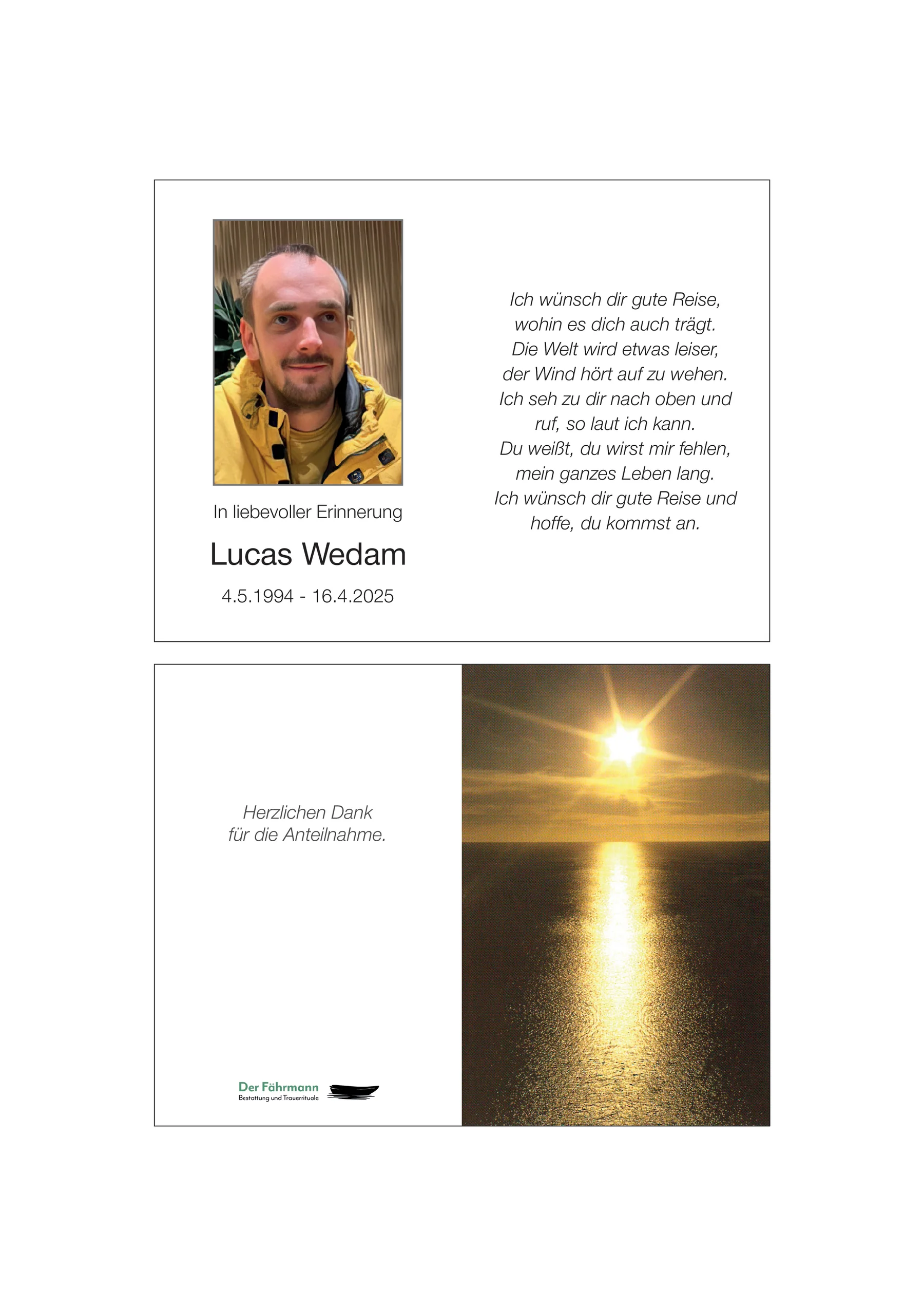 Kondolenzbuch für Lucas Wedam