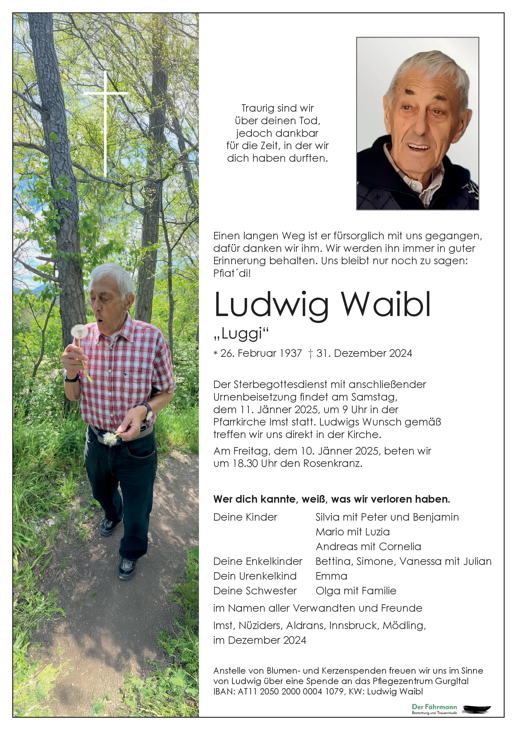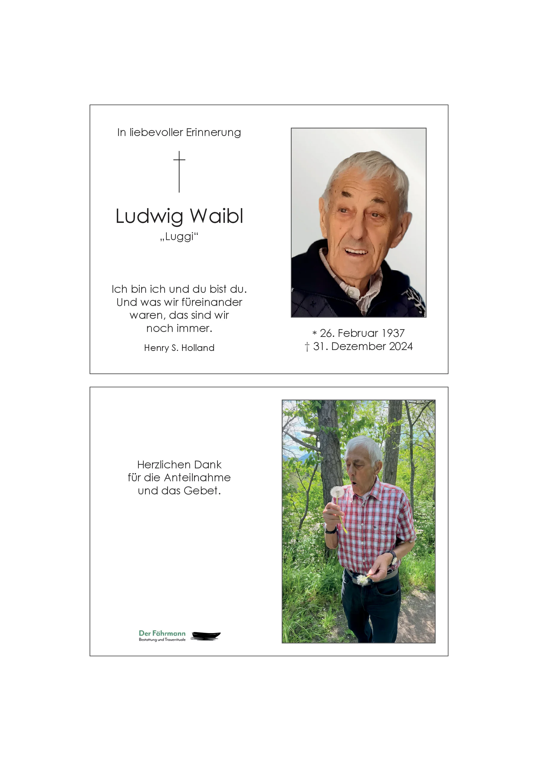 Dem Auge fern , dem Herzen nah..Luggi du warst ein Herzen guter Mensch. Ich bin froh dich gekannt zu haben. Eine ehemalige Heimhilfe der Hg 3..Den Angehörigen wünsche ich viel Kraft,in dieser schweren Zeit.