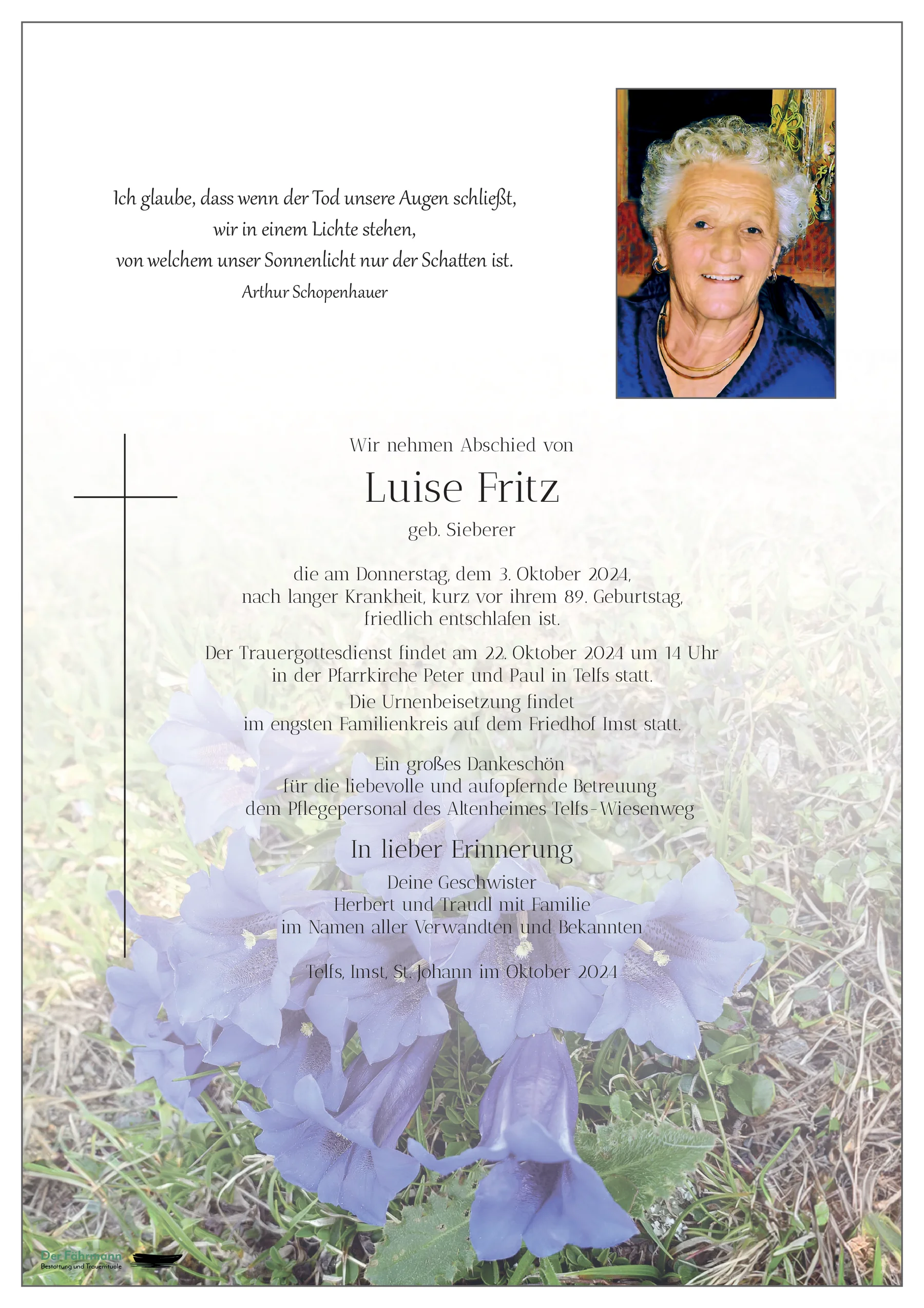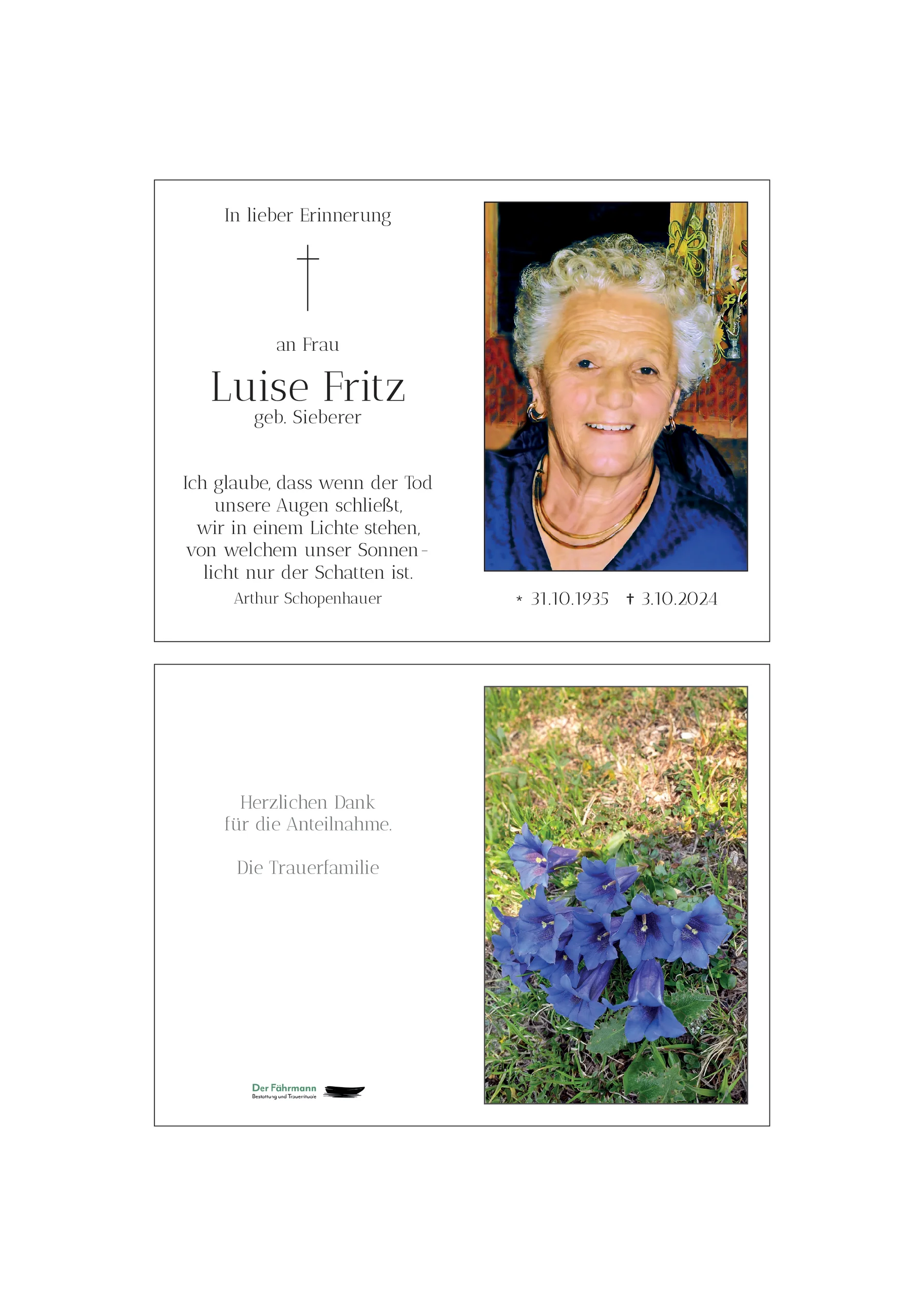 Liebe Luise, Ruhe in Frieden, die gemeinsamen Zeiten bleiben unvergessen.