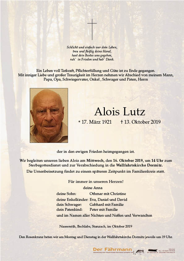 Sehr geehrte Trauerfamilie lieber Othmar!