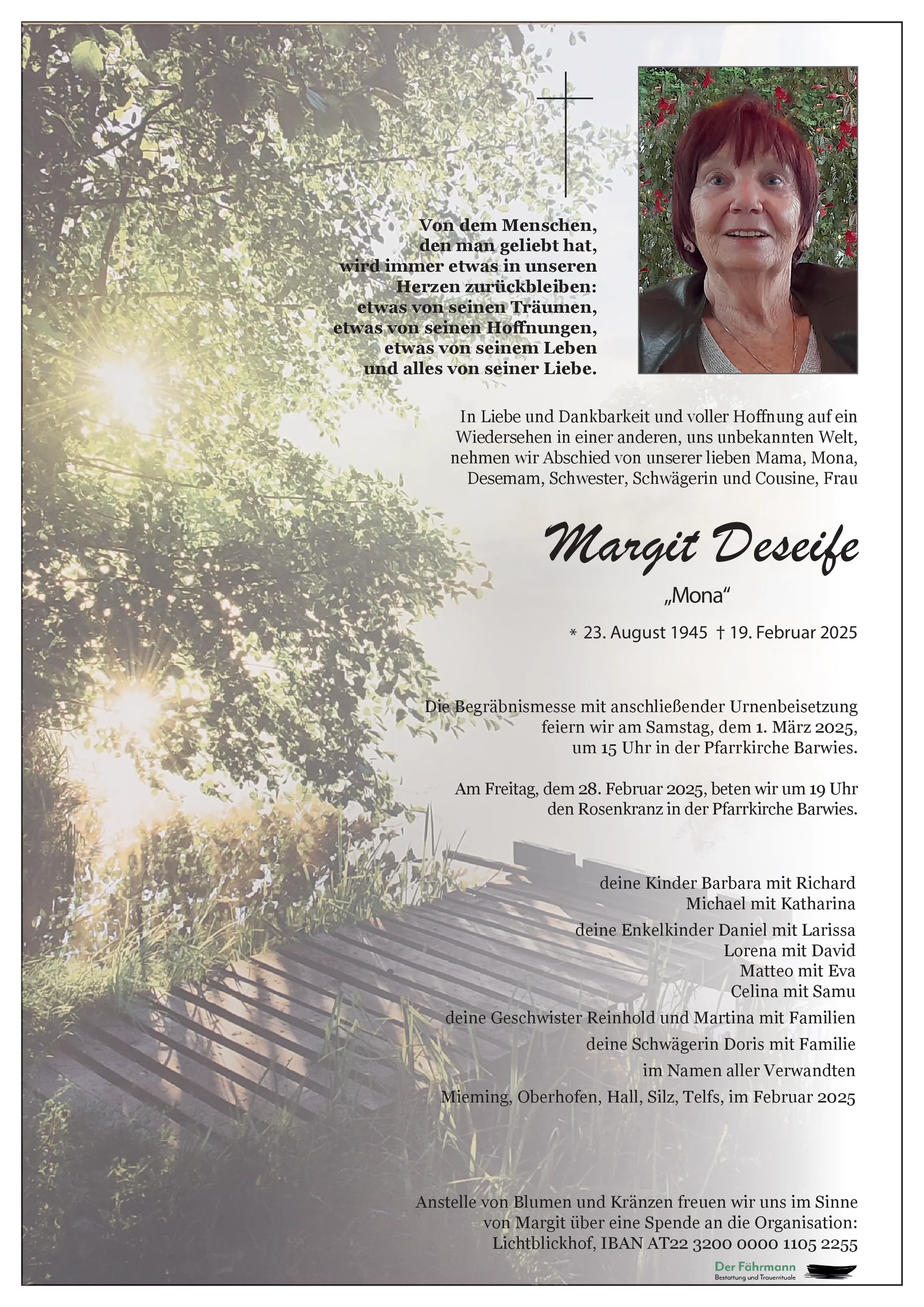 Unser aufrichtiges Beileid zu eurer lieben Mama Margit!
