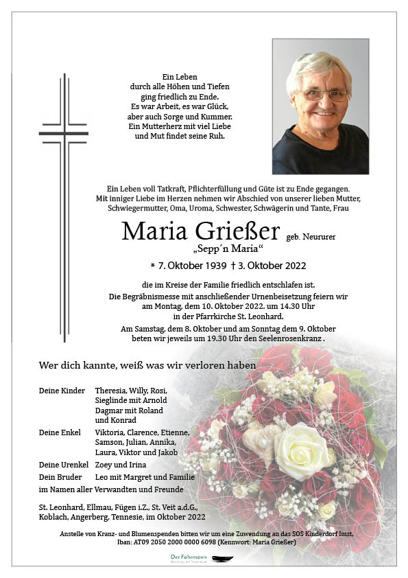 Ruhe in Frieden Maria Fam.Höllrigl Timls