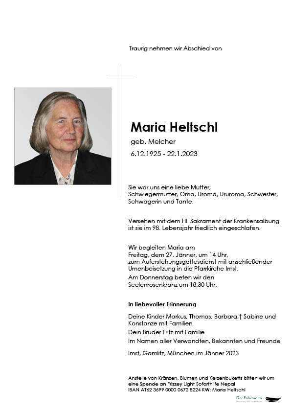 Liebe Frau Heltschl, finden SIE Geborgenheit in Gottes ewiger Herrlichkeit!