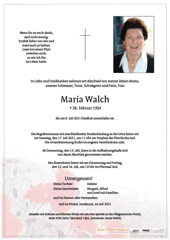 Kondolenzbuch für Maria Walch