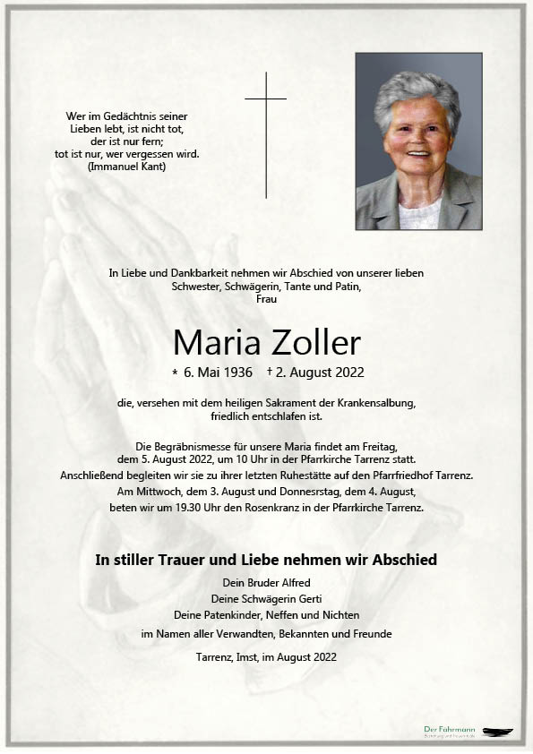 In aufrichtiger Anteilnahme Fam. Alois Baumann Roppen