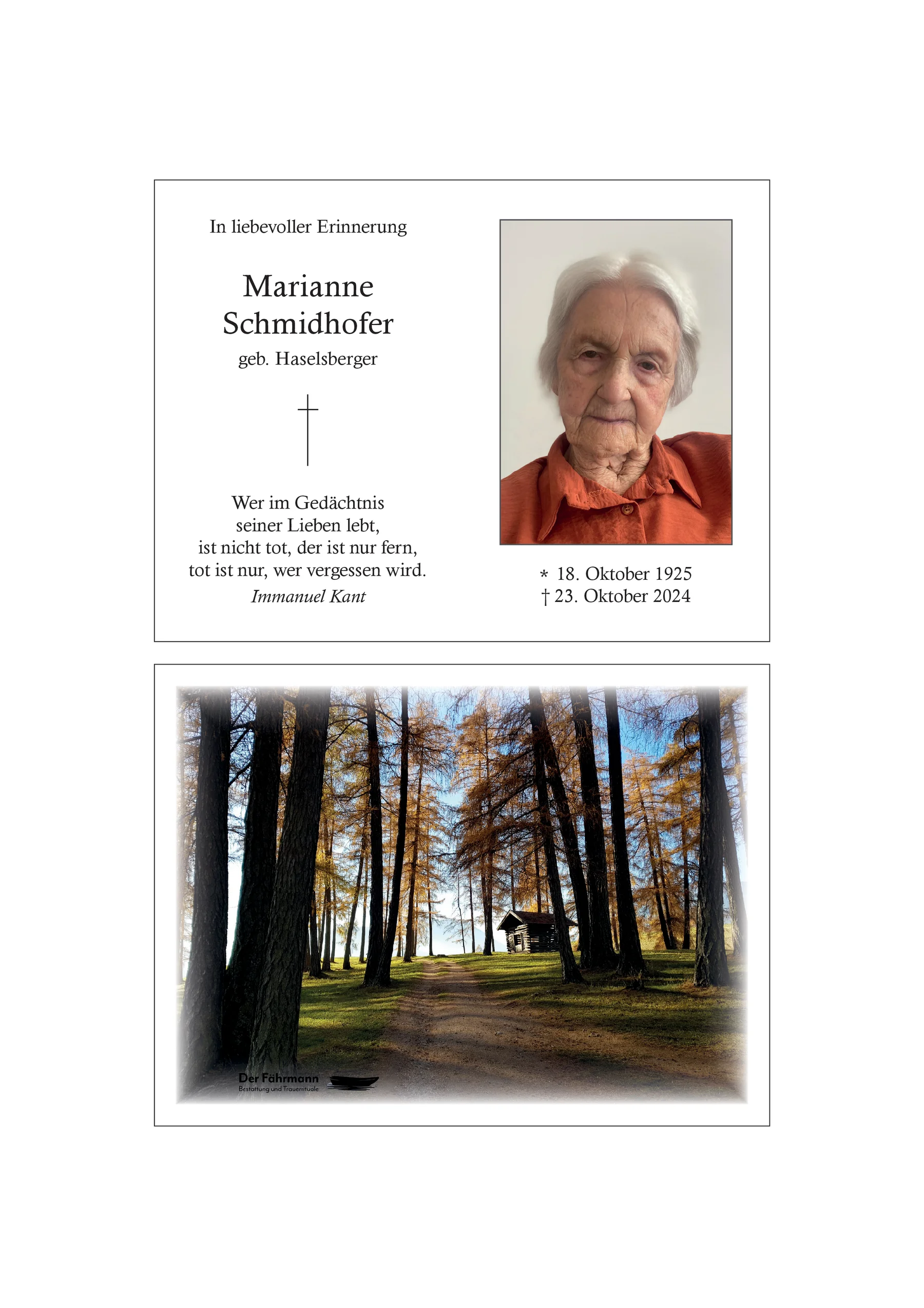 A Liachtl für di, liebe Marianna! In Erinnerung an viele schöne gemeinsame Stunden mit dir. Ruhe in Frieden. Maria und Markus mit Familie, Stuana