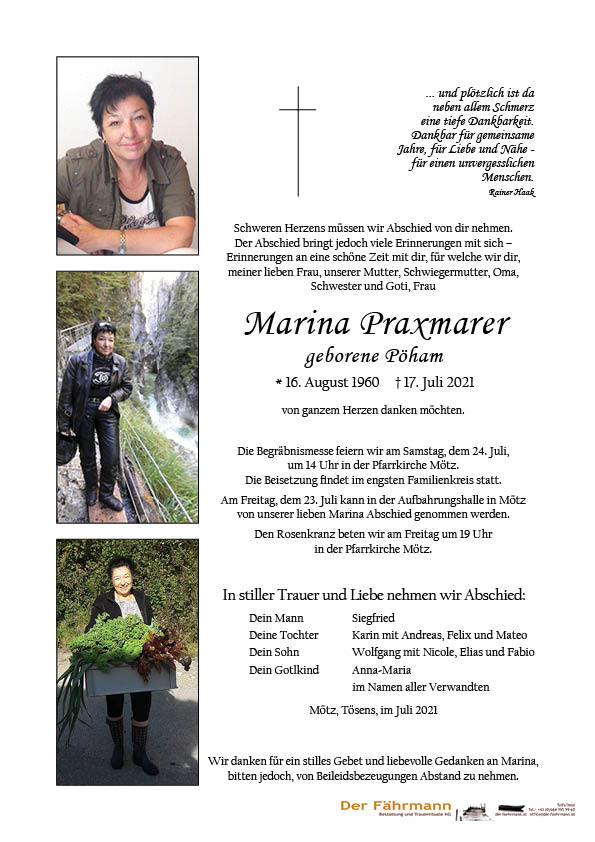 Aufbahrungs-Ort: Aufbahrungshalle Mötz ab Fr. 23.7.2021 9.00 Uhr