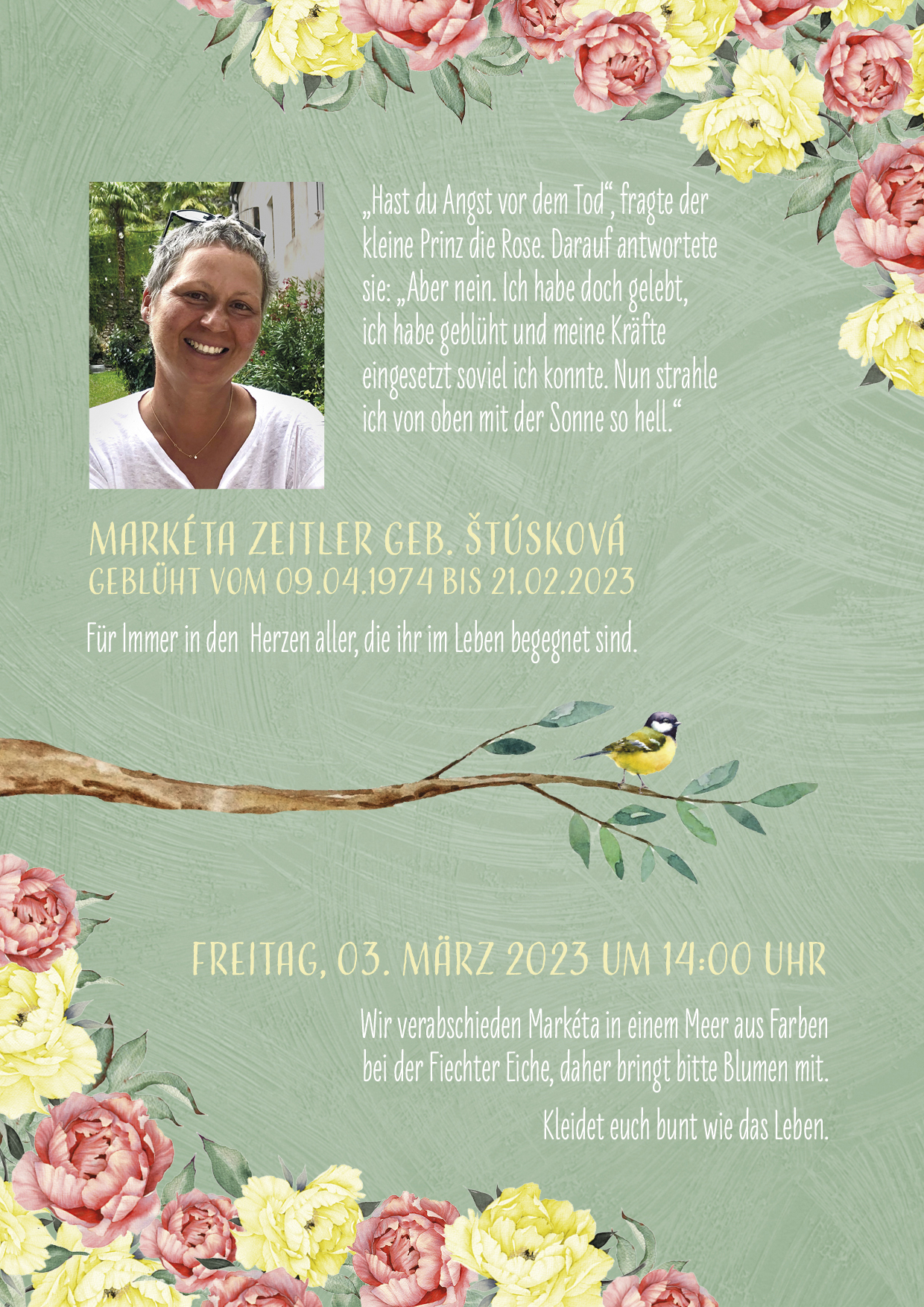 In tiefem Mitgefühl für alle, die Markéta gekannt und geliebt haben
