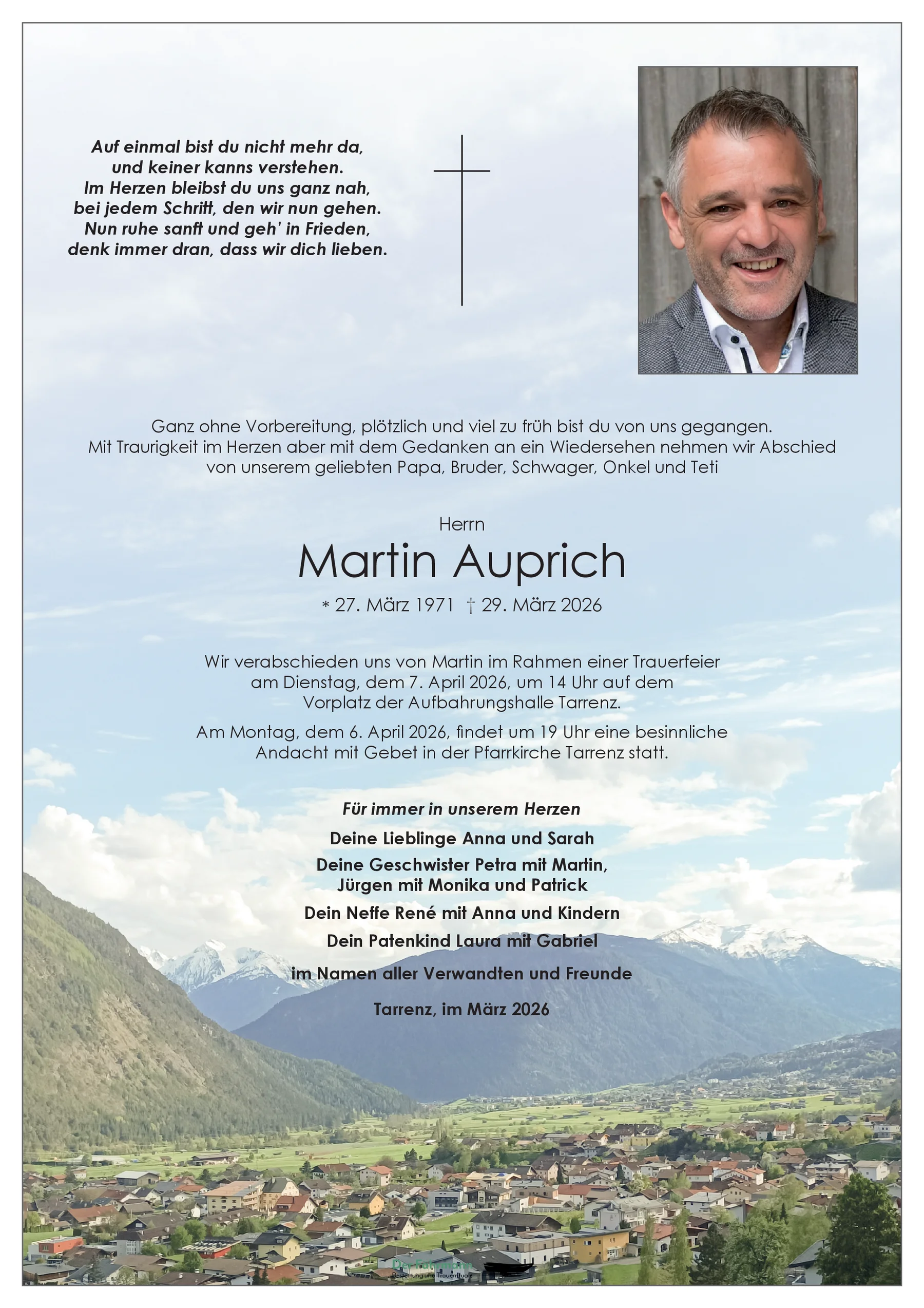Mochs guat Martin du worsch lässig trau .. i trink auf di an spritzer.. kimm guat auhen und ruhe in friedn