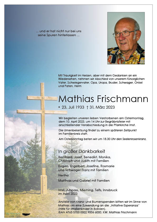 Kondolenzbuch für Mathias Frischmann