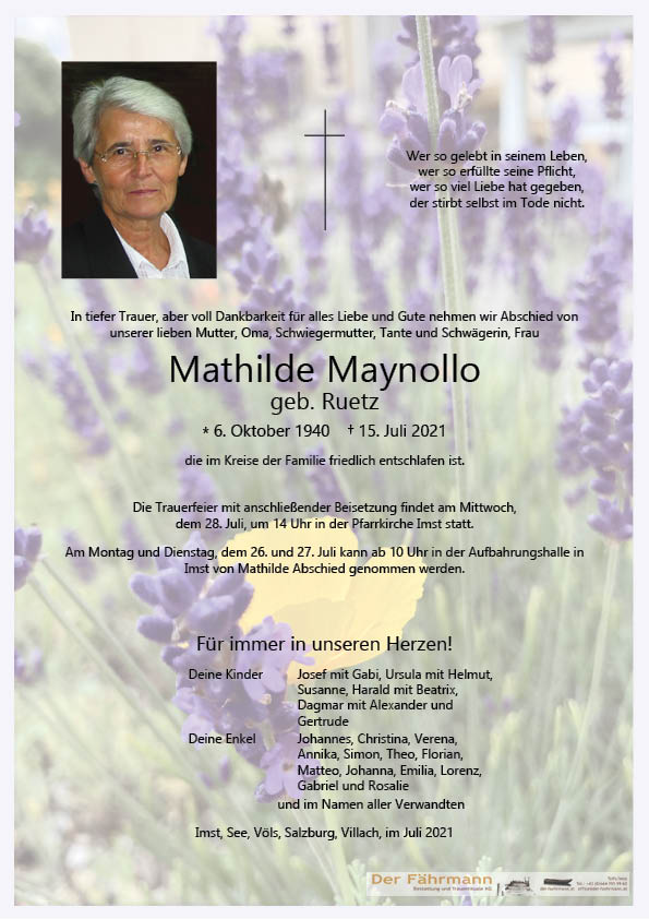 Aufbahrungs-Ort: Aufbahrungshalle Imst ab Mo. 27.7.2021 10.00 Uhr
