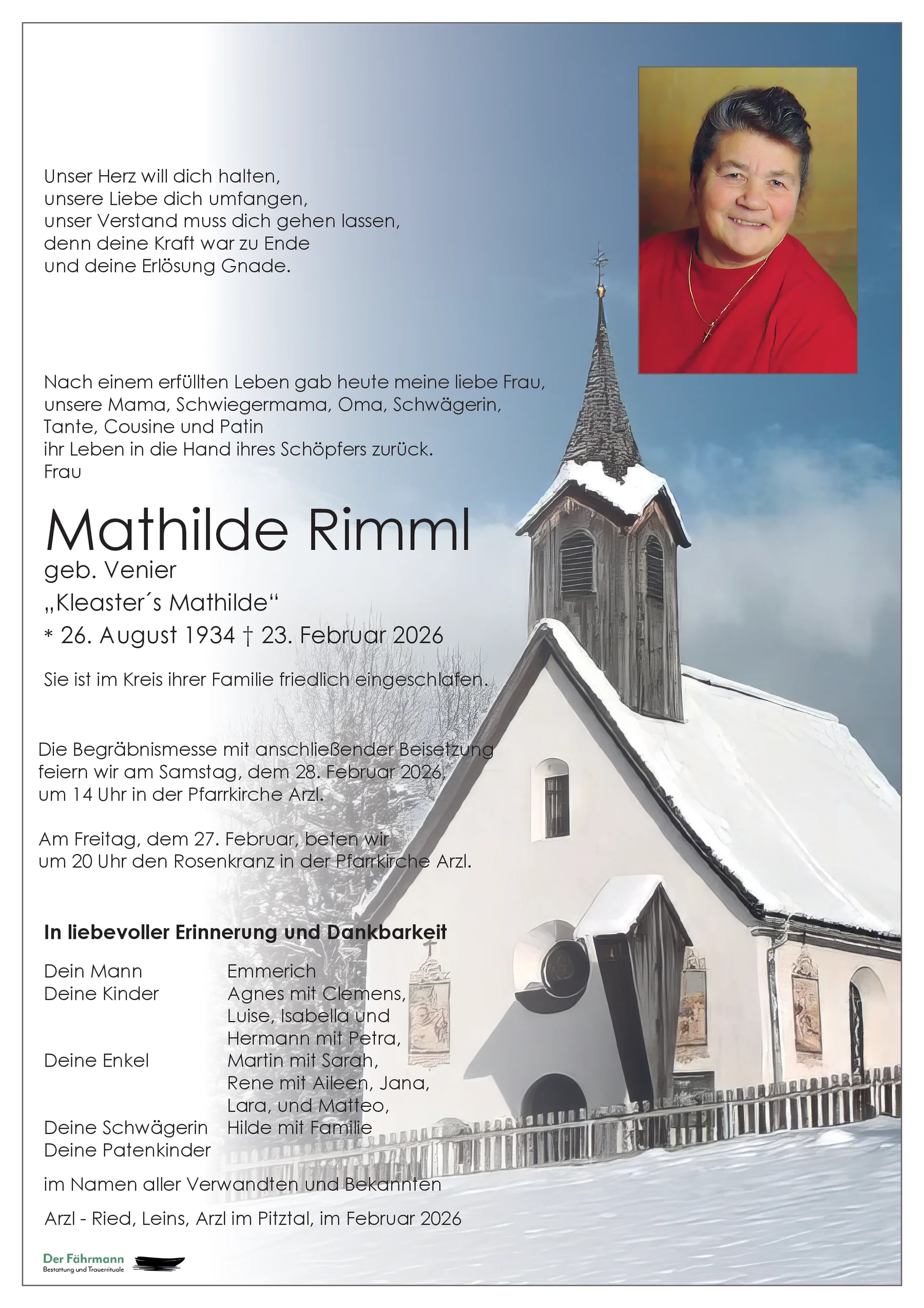 Unser aufrichtiges Beileid? Fam. Hugo und Antonia Rimml