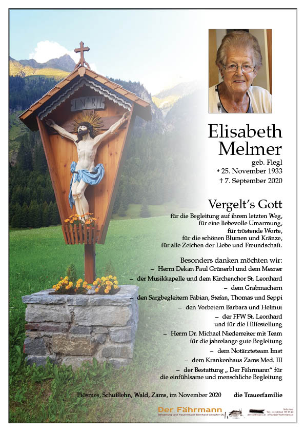Wir werden „Lisl“, unsere Nachbarin, in guter Erinnerung behalten und sie sehr vermissen.