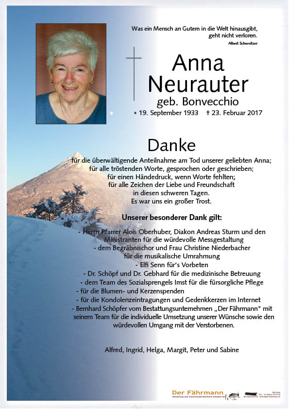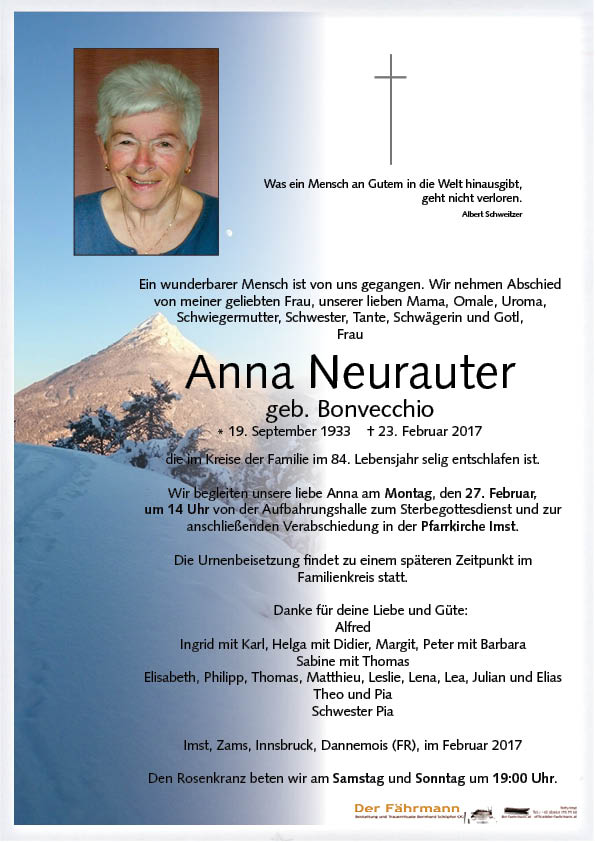 Kondolenzbuch für Neurauter Anna