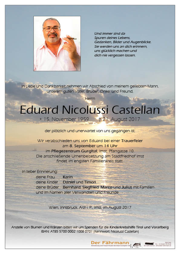 Gedenkkerzen für Nicolussi Castellan Eduard