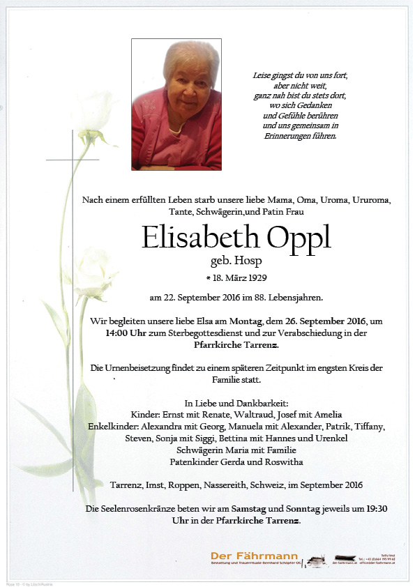 aufrichtiges Beileid zum Heimgang eurer lieben Mutter und Großmutter. Elsa war ein lieber Mensch.