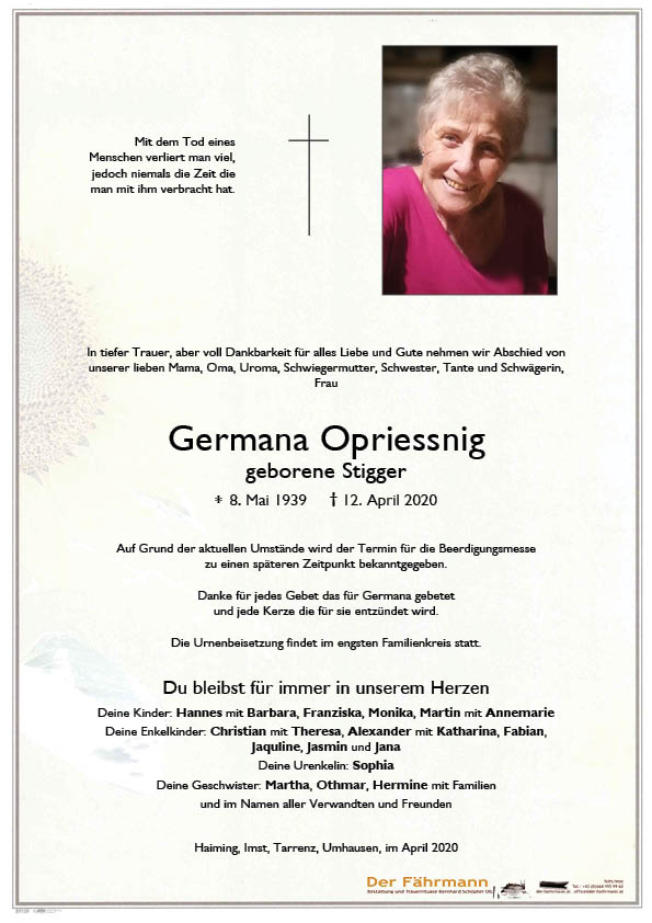 Leider muss ich Euch heute mein herzlichstes Beileid zum Tode Eurer Germana aussprechen.