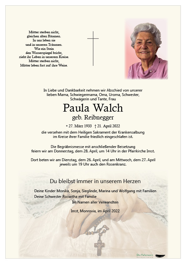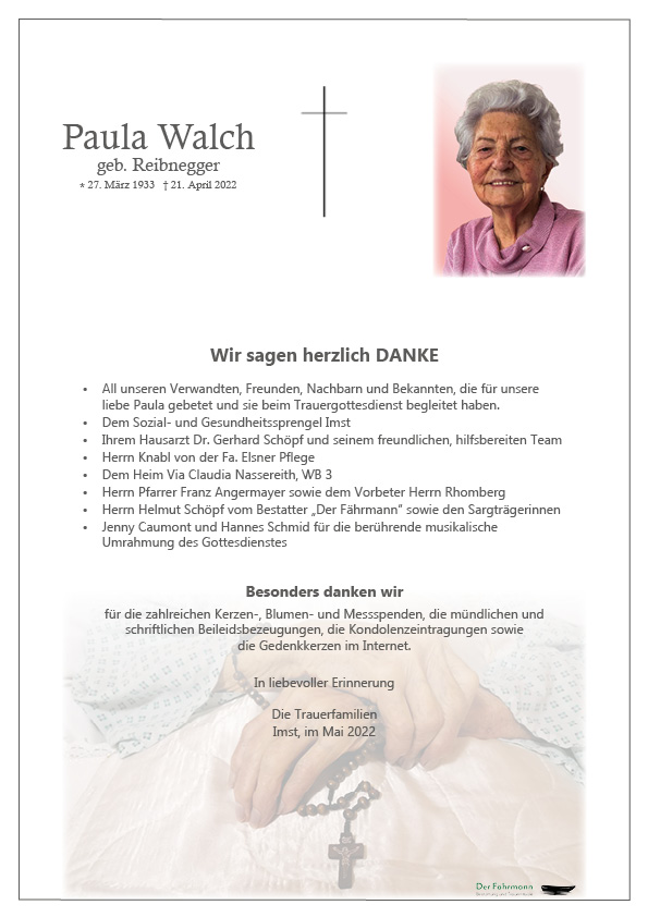 Kondolenzbuch für Paula Walch