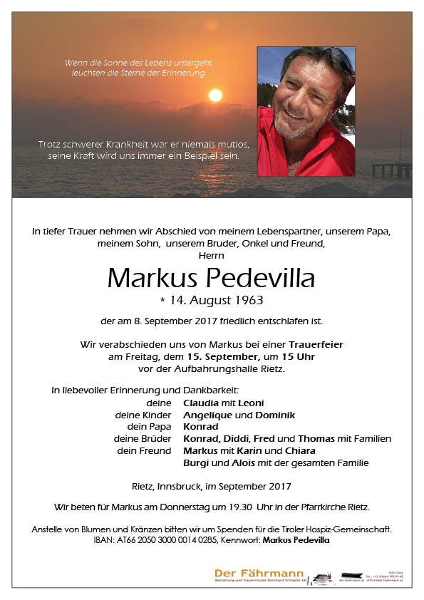 Aufbahrungs-Ort: am Do den 14.9 in der Aufbahrungshalle Rietz