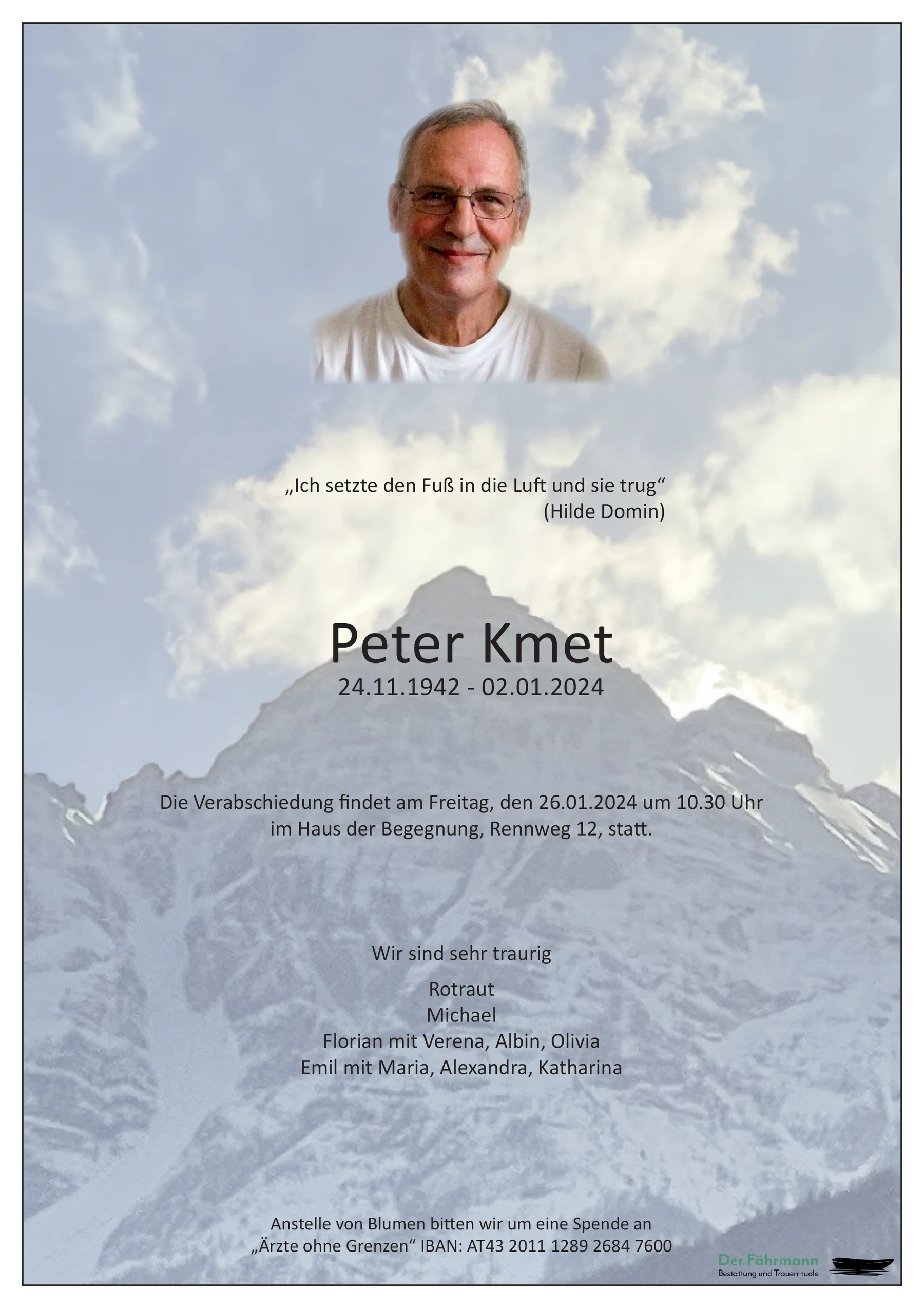 Die Brücke zwischen Leben und Tod ist die Erinnerung. Solange Du in unseren Herzen bist, lieber Peter, wirst Du über den Tod hinaus bei uns sein. Lasst uns dankbar zurückschauen an gemeinsam verbrachte fröhliche Stunden! Wir sind in Gedanken bei Dir, liebe Rotraut und bei der Familie in dieser schweren Zeit des Abschieds und der Trauer.