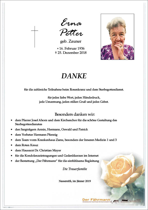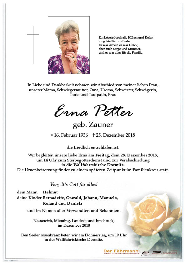 Ruhe in Frieden, Erna. Fam. Gassler