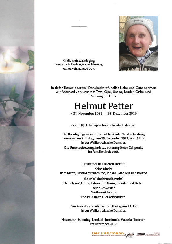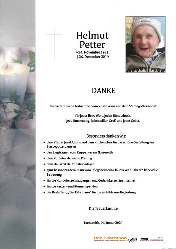 Kondolenzbuch für Petter Helmut