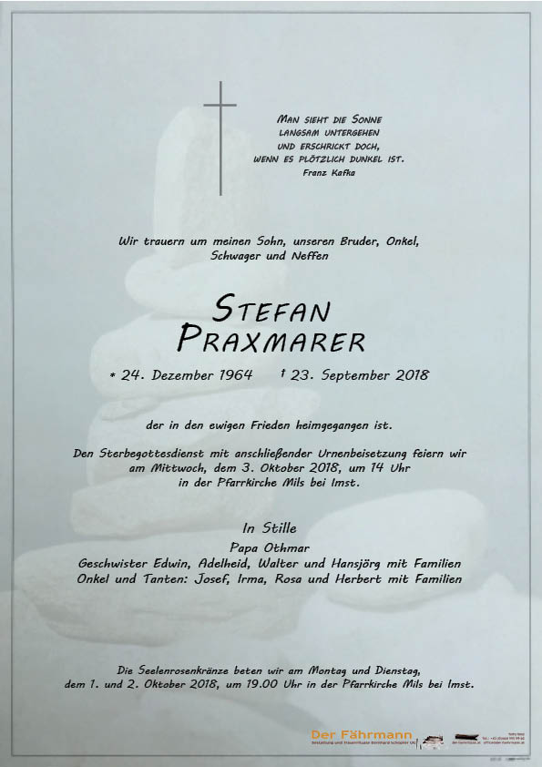 Aufbahrungs-Ort: Mo. und Di. in der Aufbahrungshall Mils bei Imst