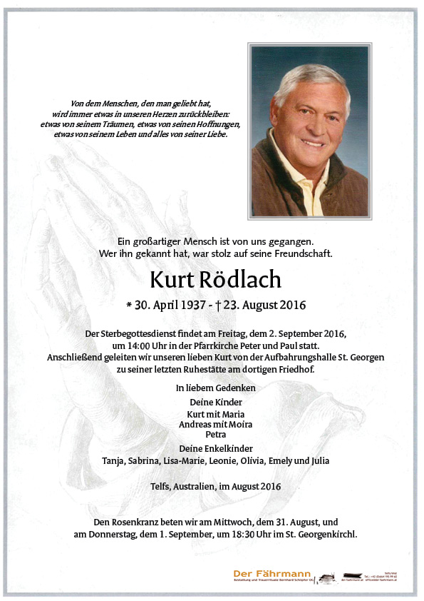 wenn es plötzlich dunkel ist. Aber das Schönste, was euer Vater hinterlassen kann, ist ein Lächeln im Gesicht derjenigen, die an "Kurtl" denken. Mein Aufrichtiges Beileid!