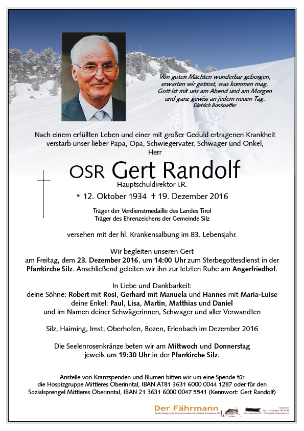 Kondolenzbuch für Randolf Gert