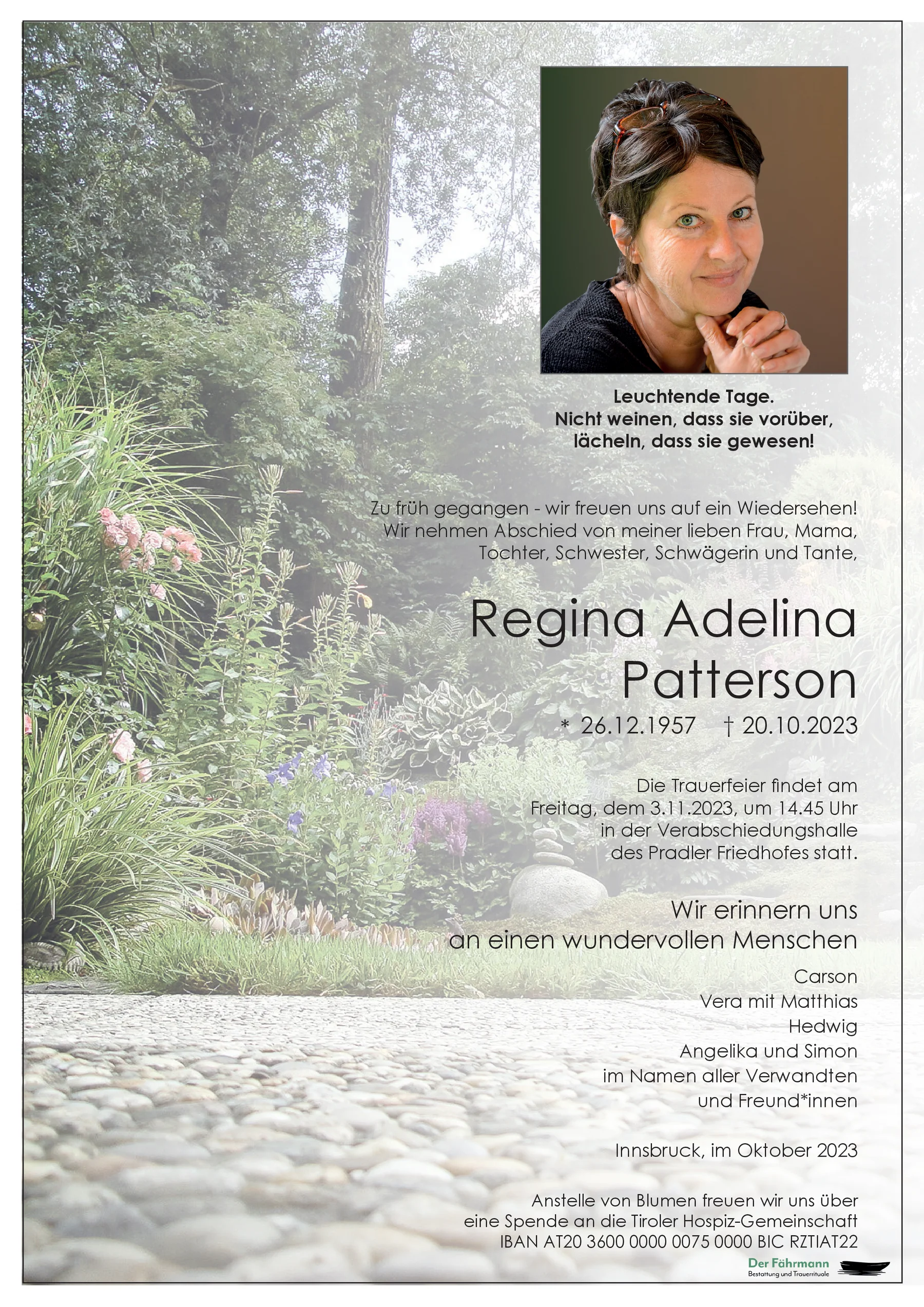 Ruhe in Frieden! liebe Regina, Roman & Sandra Innerbichler