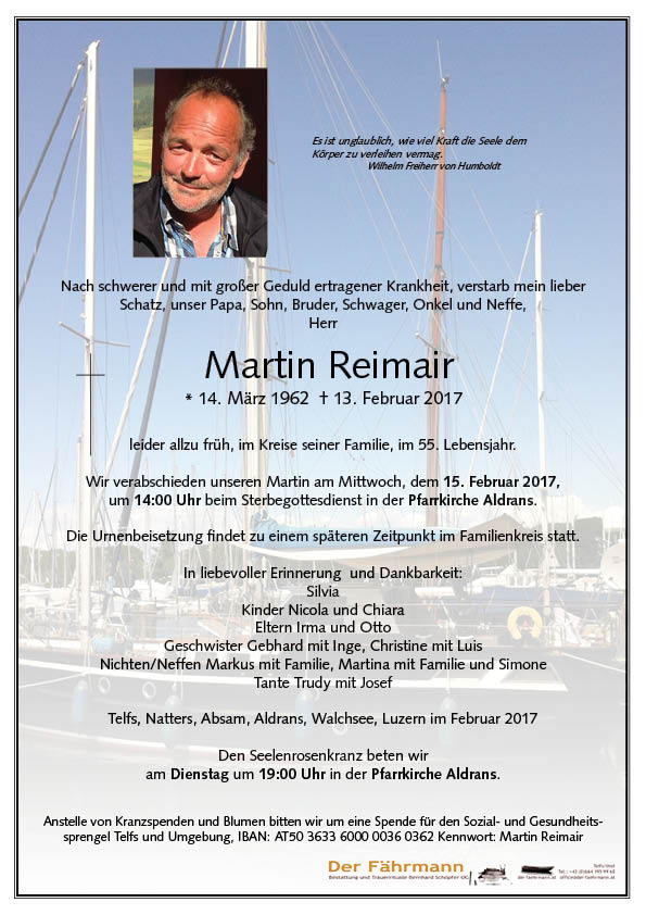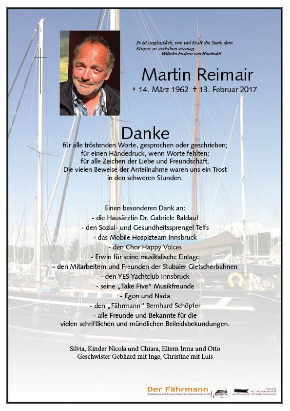 Kondolenzbuch für Reimair Martin