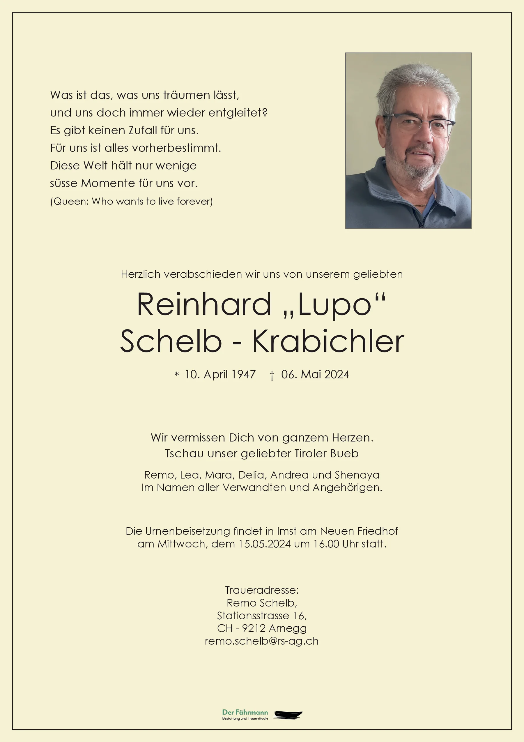 Kondolenzbuch für Reinhard Schelb - Krabichler
