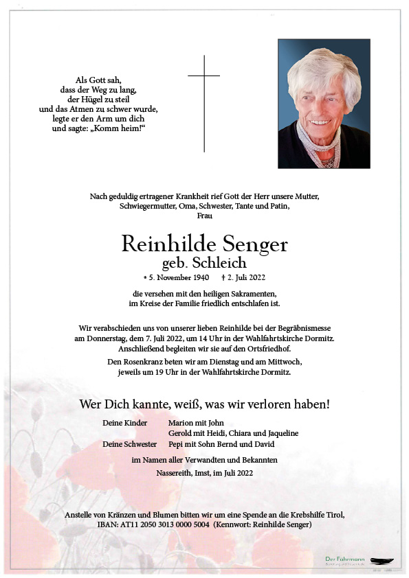 Aufbahrungs-Ort: Aufbahrungshalle Nassereith ab 5.7. um 12 Uhr