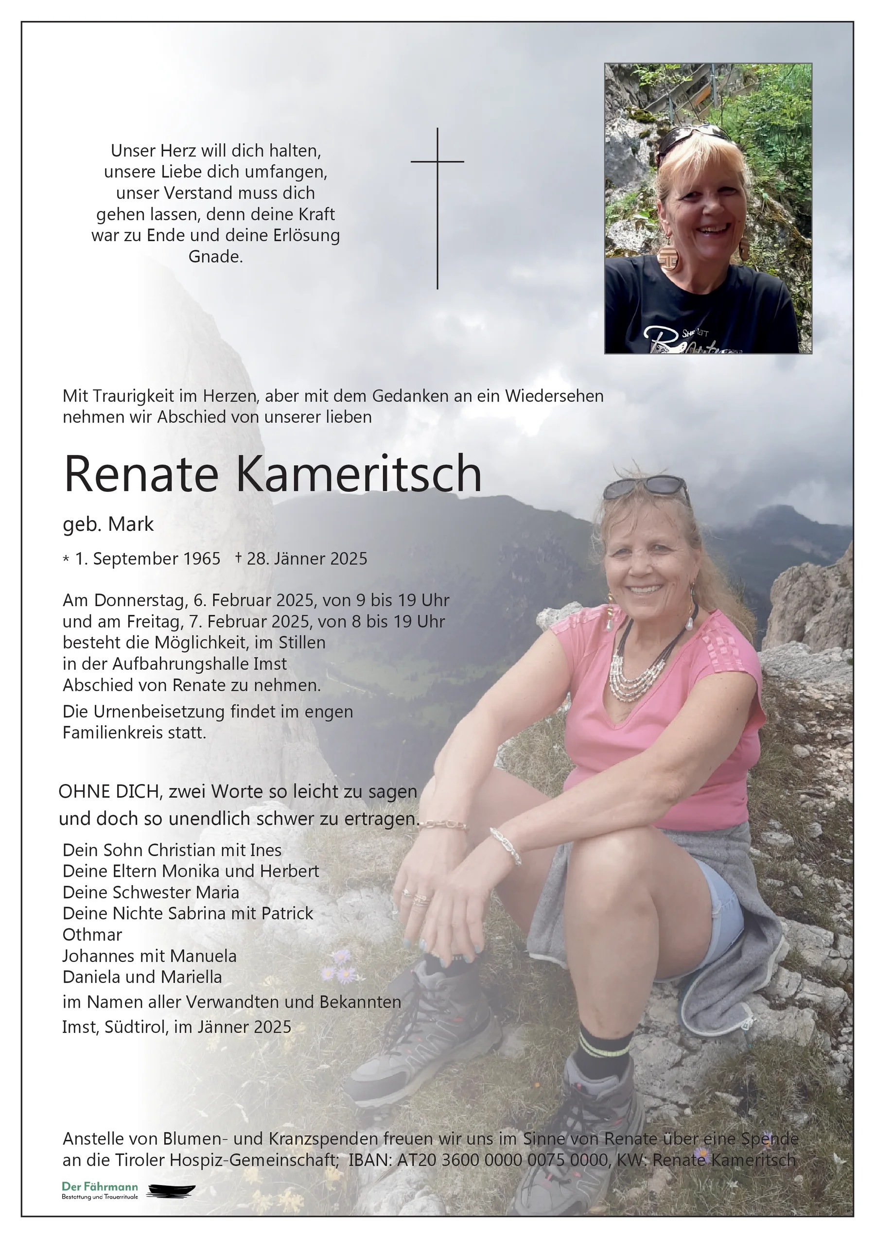 Mein aufrichtiges Beileid liebe Familie Mark und viel Kraft in diesen schweren Tagen. Dir liebe Renate eine gute Reise ins Licht.